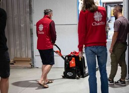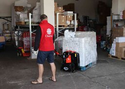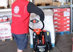 Darem elektrického paletového vozíku brněnská firma Simple Lift výrazně usnadnila manipulaci s těžkými paletami v Humanitárním skladu Diecézní charity Plzeň. Ta v roce 2024 vydala potřebným lidem potravinovou a materiální pomoc o hmotnosti blížící se 130 tunám, většina jí prochází právě přes Humanitární sklad v Cukrovarské ulici v Plzni. Zatímco dříve muselo pohyb až 900kilových palet s vodou, trvanlivými potravinami či hygienickými potřebami před skladem jistit i několik mužů, nyní zvládá veškerou manipulaci distributor pomoci Vojtěch Pezlar zcela sám, a hravě.