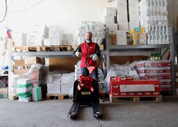 Distributorovi potravinové a materiální pomoci Vojtěchu Pezlarovi elektrický vozík nesmírně ulehčil manipulaci ve skladu.