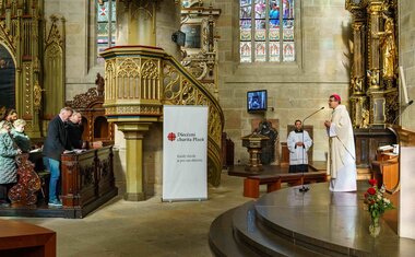 V pátek 1. listopadu byla v plzeňské katedrále sv. Bartoloměje v den 31. výročí Diecézní charity Plzeň sloužena děkovná mše svatá. Celebroval ji biskup plzeňský Mons. Tomáš Holub. Ve strhujícím kázání před pracovníky charit z celé diecéze se věnoval výkladu blahoslavených v Matoušově evangeliu. Mši koncelebroval emeritní biskup plzeňský Mons. František Radkovský, současný prezident Diecézní charity Plzeň. Právě on ustavil diecézní charitu svým rozhodnutím 1. listopadu 1993, brzy po založení plzeňské diecéze. Na závěr mše rozdal biskup Tomáš Holub jmenovací dekrety členům Rady diecézní charity. Oběma biskupům pak předal děkovné kytice Jiří Lodr, ředitel diecézní charity, stojící v jejím čele od samého začátku již 31 let.