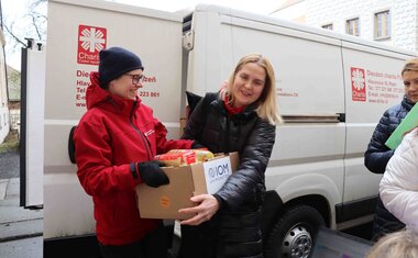 Díky daru od Mezinárodní organizace pro migraci (IOM) můžeme distribuovat potravinovou pomoc zranitelným skupinám uprchlíků z Ukrajiny, zejména seniorům a matkám s dětmi.