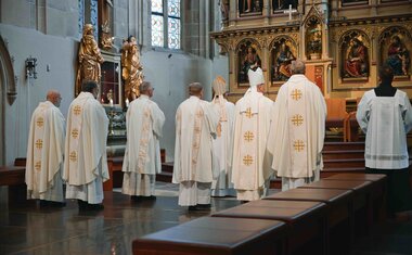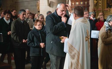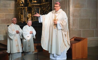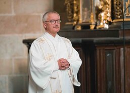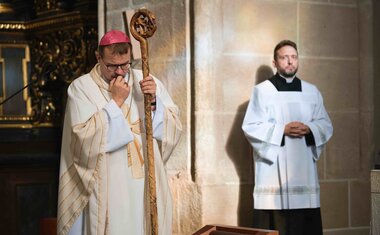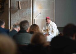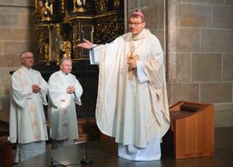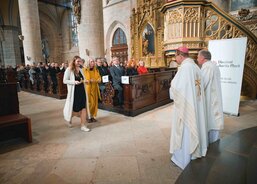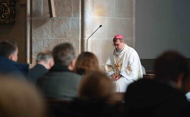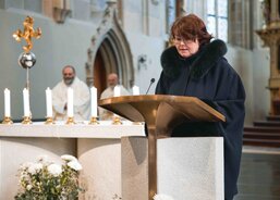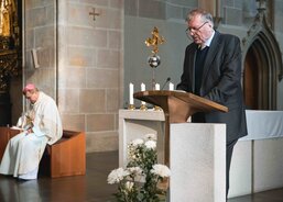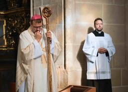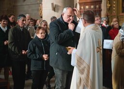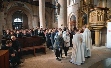 „Chtěl bych, aby tato bohoslužba byla děkováním skrze modlitbu. Aby byla děkováním za to, že Charita je blízko lidem způsobem, který nezavání tím, že její pracovníci jsou špatně vyřezaní svatí,“ uvedl biskup Tomáš Holub na začátku obřadu. „Zvu vás, abyste chválili, děkovali, prosili a žasli se mnou.“