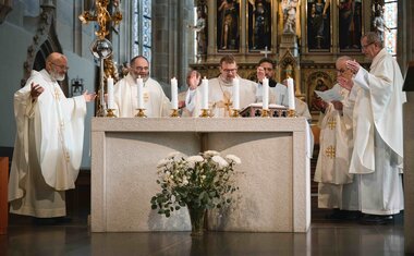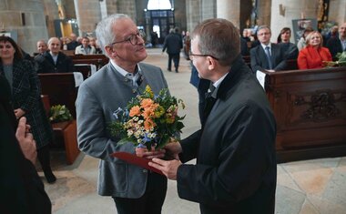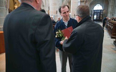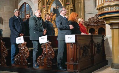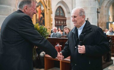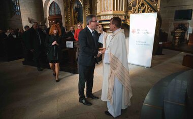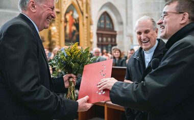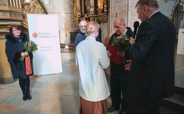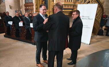 Mši svatou v den výročí koncelebroval také jáhen Michael Weißmann, ředitel partnerské Caritas Regensburg. Ta se významně podílela na financování prvních charitních služeb v Plzeňském kraji stejně jako na vzdělávání zdejších charitních pracovníků na stážích v Německu. A v podpoře stále pokračuje.