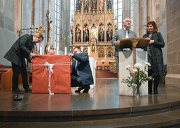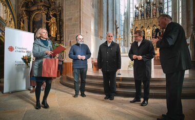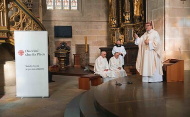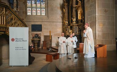 Charita však v katedrále zůstává i nadále – do 12. listopadu je zde k vidění výstava fotografií ze služeb a projektů Diecézní charity Plzeň připravená k jejímu 30. výročí.