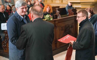 Po mši poděkoval ředitel diecézní charity oběma biskupům a předal jim pamětní listy. Spolu s biskupem Tomášem Holubem pak děkoval také významným podporovatelům. Mezi nimi byli zástupci Ministerstva práce a sociálních věcí a krajských a městských samospráv, které charitní činnost spolufinancují. Své poděkování obdržela samozřejmě také Caritas Regensburg, její ředitel Michael Weißmann byl zároveň prvním, kdo z rukou Jiří Lodra a biskupa Tomáše Holuba obdržel Diplom sv. Vincence z Pauly, patrona moderní charitní práce. Následně bylo toto ocenění předáno dalším téměř čtyřiceti laureátům, kteří jsou dlouholetými pracovníky Charity a kteří přijeli z celé šíře plzeňské diecéze. Diplom sv. Vincence z Pauly obdržel na závěr i první zaměstnanec Diecézní charity Plzeň a její ředitel Jiří Lodr. Slavnostní program po setmění doplnil koncert pěveckého tělesa Pilsen Voice, který potěšil posluchače v zaplněné katedrále.