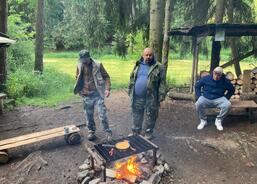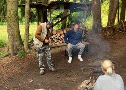 Z neděle na pondělí jsme byli s našimi 5ti nejstatečnějšími klienty v rámci nácviku poprvé zkusit vyrazit spát pod širé nebe. Každý měl vše potřebné sbalené ve své krosně. Co si naložil, musel si odnést tam i zpět. Vyrazili jsme vlakem z Meclova do Holýšova, pak 7 km pěšky k trampské osadě u potoka Hořina přezdívaného „Bobří řeka“. Povečeřeli jsme u ohně, řekli si pár strašidelných historek, než nás déšť vyhnal do přístřešků, kde jsme v suchu přečkali noc. Ráno jsme posnídali a pomalu vyrazili stejnou cestou zpět k domovu. Všichni jsme si výlet užili a všech 5 klientů by uvítalo další takový výlet.