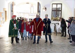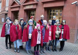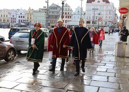 Na svátek Tří králů se na koledu vydali náměstek hejtmanky Plzeňského kraje Josef Bernard, radní města Plzně David Šlouf a biskup plzeňský Tomáš Holub. Na své pouti Plzní navštívili krajský úřad, budovy magistrátu, biskupství, katedrálu sv. Bartoloměje, radnici, ale také pobočku ČSOB na Americké ulici, Západočeskou univerzitu v Plzni nebo Škodu Transportation. Po velkém koledování nalezli občerstvení v Plzeňském Prazdroji. Jejich cesta v doprovodu dětského pěveckého sboru Jiřičky byla naplněna radostí a všude se jim dostávalo vřelého přijetí.
