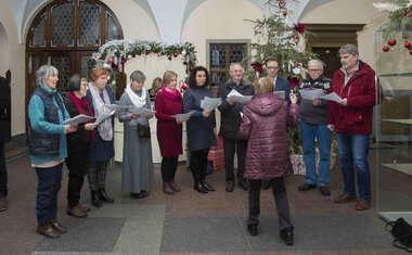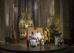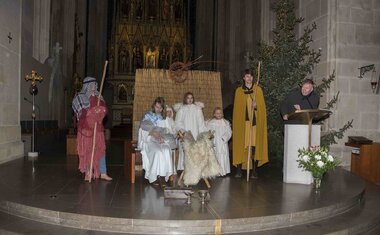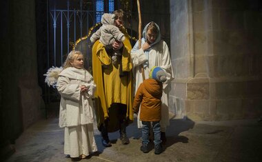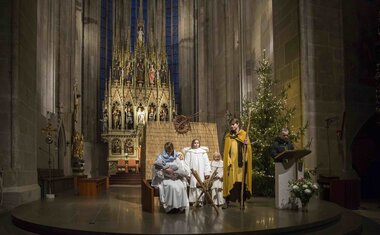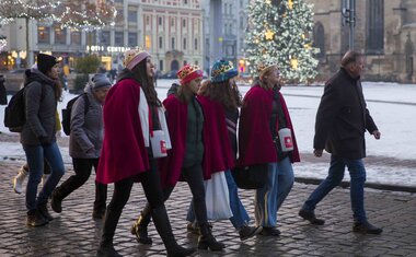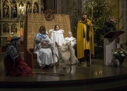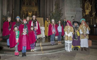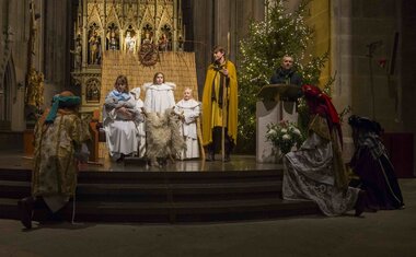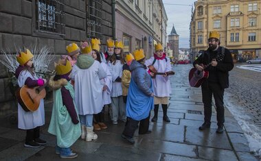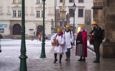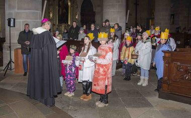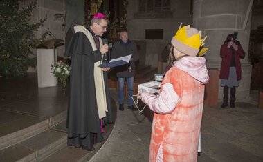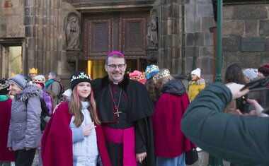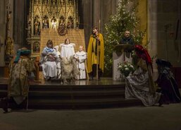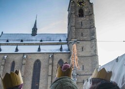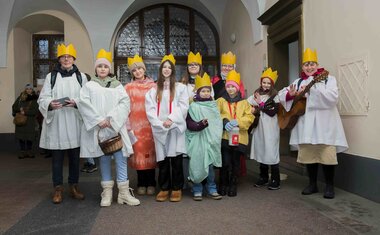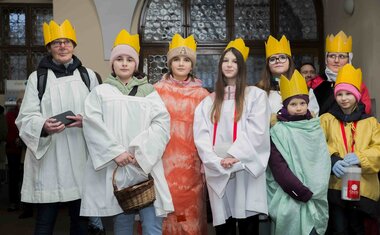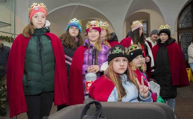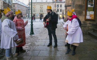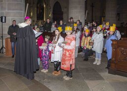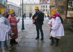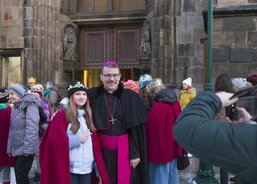 Biskup Tomáš Holub zde požehnal koledníkům a posvětil i křídy, jimiž budou tři králové v Plzni psát na dveře, zárubně či vrátka požehnání K + M + B. Tato písmena značí: „Christus mansionem benedicat,“ neboli: „Ať Kristus požehná tomuto domu.“ Návštěvníci katedrály pak mohli zhlédnout vánoční příběh v podání Staroplzeneckého Živého Betléma.