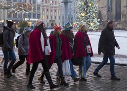 Tříkrálová sbírka v Plzni byla zahájena v pondělí odpoledne právě na svátek Tří králů, tedy 6. ledna. V mázhauzu plzeňské radnice nejprve vystoupil dětský sbor Jiřičky a poté i dospělí zpěváci sboru Resonance. Svou podporu Tříkrálové sbírce zde vyslovili primátor města Plzně Roman Zarzycký a biskup plzeňský Tomáš Holub. Popřát a poděkovat koledníkům přišel také ředitel Diecézní charity Plzeň Jiří Lodr a ředitel Městské charity Plzeň Pavel Janouškovec. Na malé koledníky před radnicí tradičně čekal koňský pivovarský povoz, jenž s malými králi, plzeňským biskupem a plzeňským primátorem obkroužil náměstí Republiky a zastavil před vchodem do katedrály.