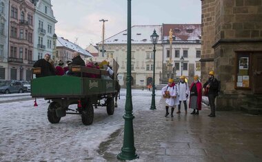 Plzeňské zahájení se opět odehrálo na radnici i v katedrále. Malí koledníci obkroužili náměstí na povozu taženém pivovarskými koňmi. V katedrále sv. Bartoloměje pak obdrželi požehnání od biskupa plzeňského Tomáše Holuba.