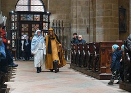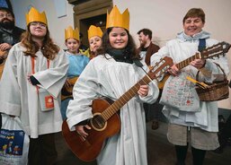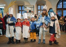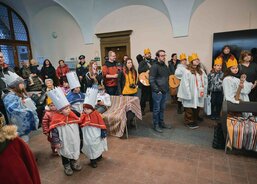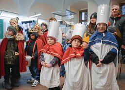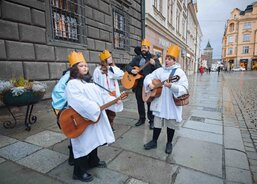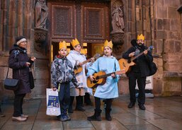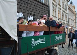 Tříkrálová sbírka byla v Plzni zahájena 4. ledna. Koledníci se nejprve sešli na plzeňské radnici, kde k nim promluvil primátor krajského města Roman Zarzycký a biskup plzeňský Tomáš Holub. Po zpěvu koled nastoupili malí králové, biskup i primátor do povozu pivovarských koní, který obkroužil náměstí Republiky a zavezl je před vchod katedrály sv. Bartoloměje. Zde jim otec biskup požehnal a posvětil křídy. Návštěvníci následně mohli zhlédnout vánoční příběh představený Straroplzeneckým Živým Betlémem. Malí koledníci se nakonec shromáždili před Ježíškem chovaným Pannou Marií, aby mu vzdali úctu. Pak už si převzali svěcené křídy a rozešli se do světa.