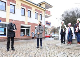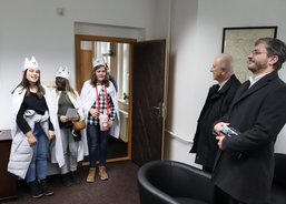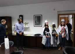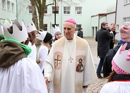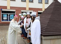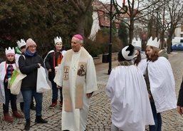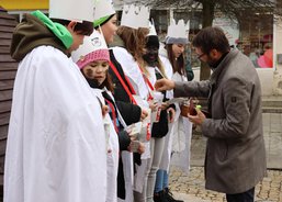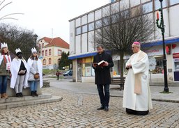 6. 1. 2020. Také v Chodově požehnal koledníkům emeritní biskup František Radkovský. Tříkrálová sbírka byla zahájena na náměstí u fontány nedaleko městského úřadu za přítomnosti pana starosty Patrika Pizingera, ředitele Diecézní charity Plzeň Jiřího Lodra, P. Romualda Štěpána Roba z Farnosti Chodov a dalších zástupců města. Před svěcením kříd a požehnáním vyložil biskup František koledníkům podrobně tříkrálový příběh.