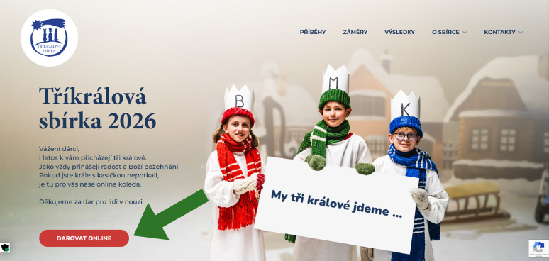 1. Jděte na www.trikralovasbirka.cz a klikněte na DAROVAT ONLINE: